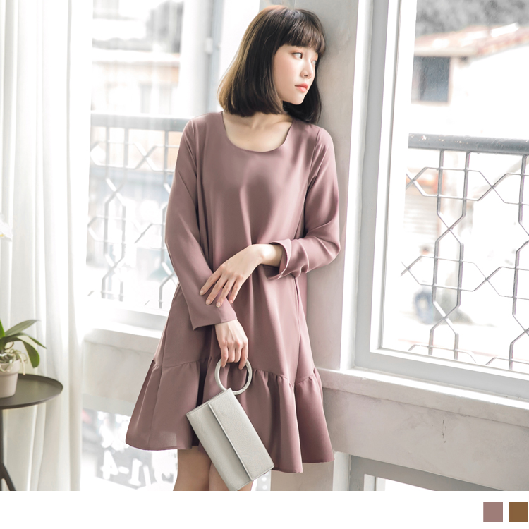 OB嚴選流行女裝OB嚴選質感雪紡袖口開衩魚尾洋裝