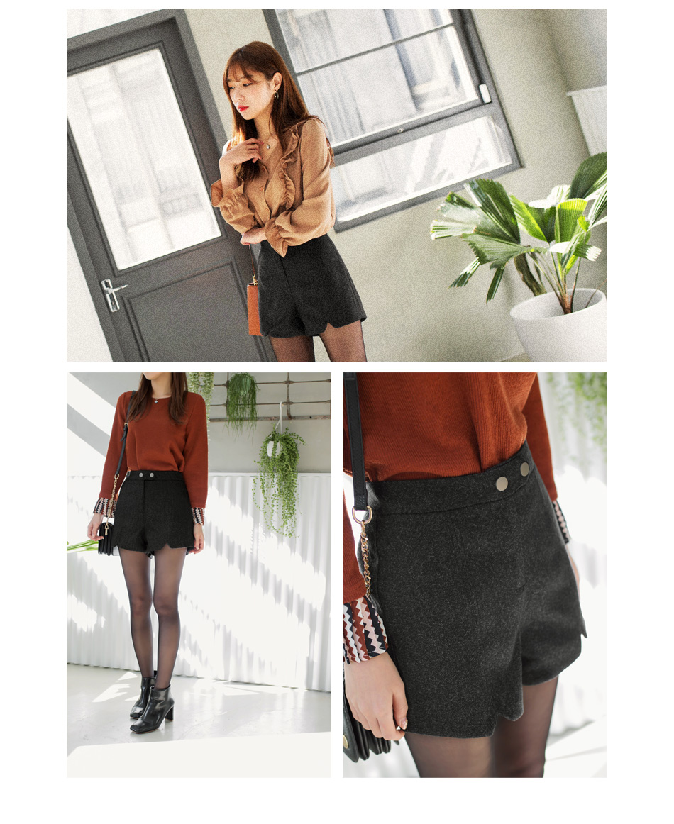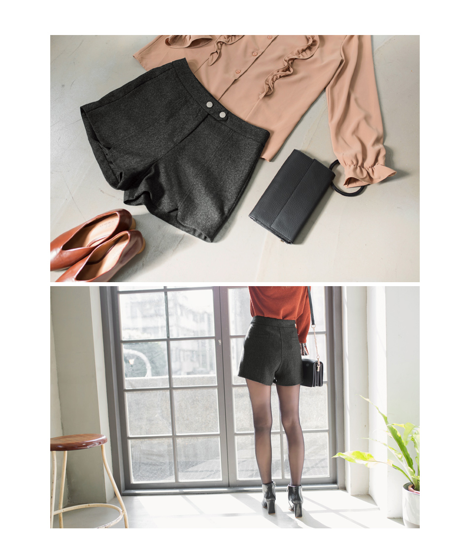 OB嚴選流行女裝OB嚴選雙釦V剪裁造型下襬俐落短褲
