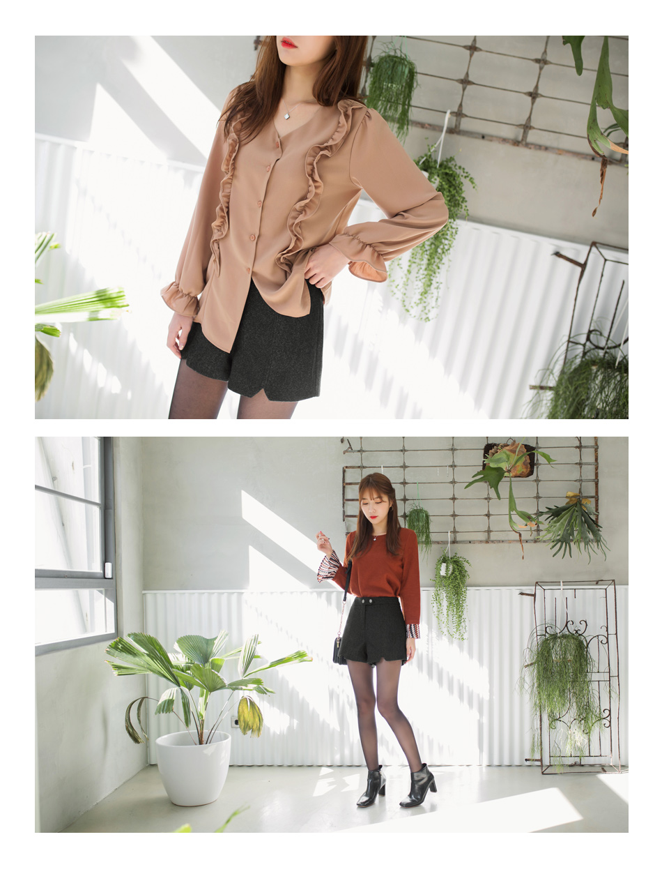 - 素色彈性面料後背拉鍊波浪邊設計上衣.5色